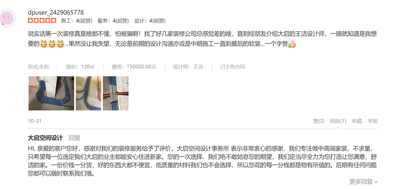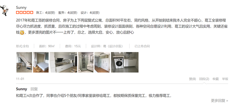 接下来,小编带大家看某知名点评平台,真实业主的评价