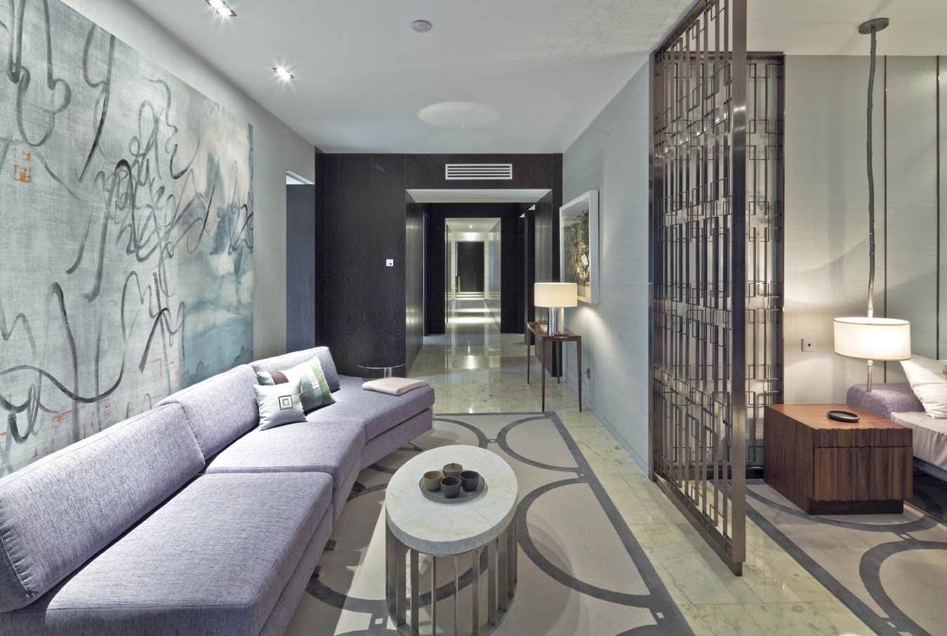 这款材质的隔断非常梦幻,不但材质轻柔,而且还能收放自如,灵活性很强。但是在选择时要选择以沙发,床的颜色相呼应的纱帘,这样才能打造舒适、温馨、浪漫的空间。