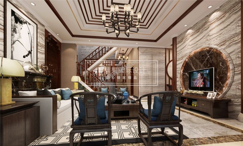 平门府500平米别墅中式风格吊顶装修效果图
