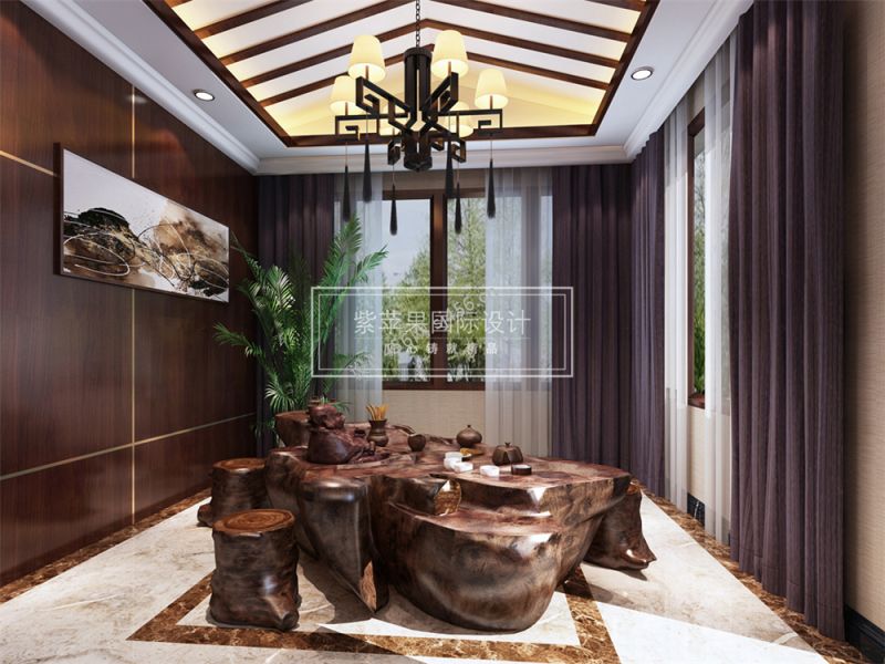 平门府500平米别墅中式风格茶室装修效果图