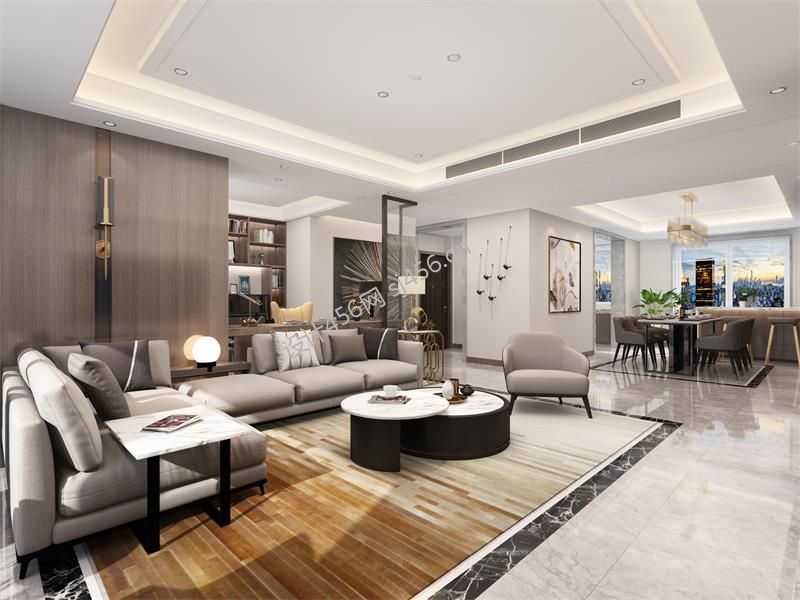 130平米现代轻奢三居室客厅吊顶装修效果图