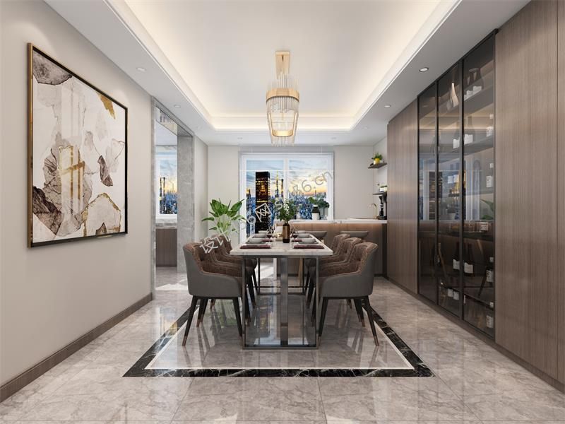 130平米现代轻奢三居室餐厅吊顶装修效果图