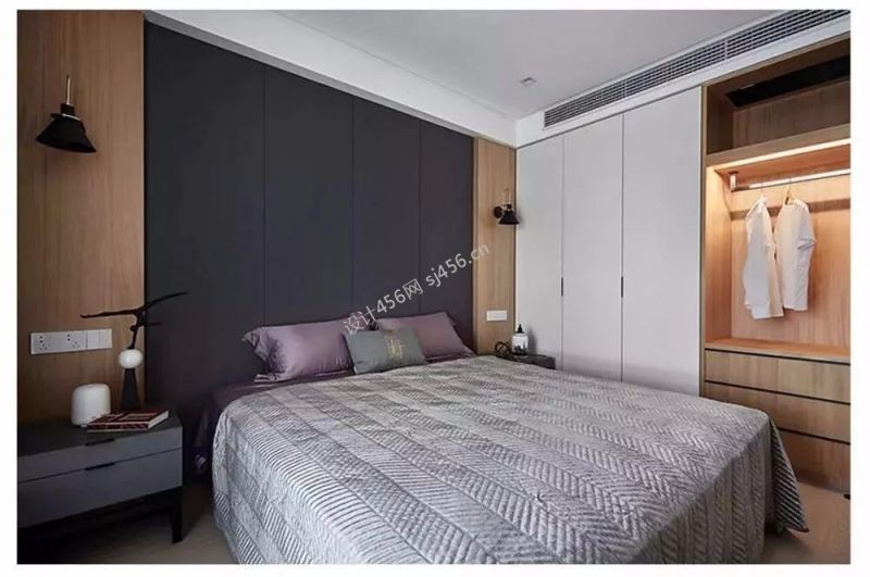 115平米现代简约三居室卧室床头装修图片