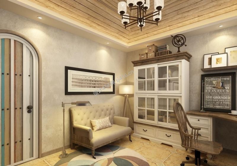 温馨美式110平米三室两厅两卫书房书柜装修效果图