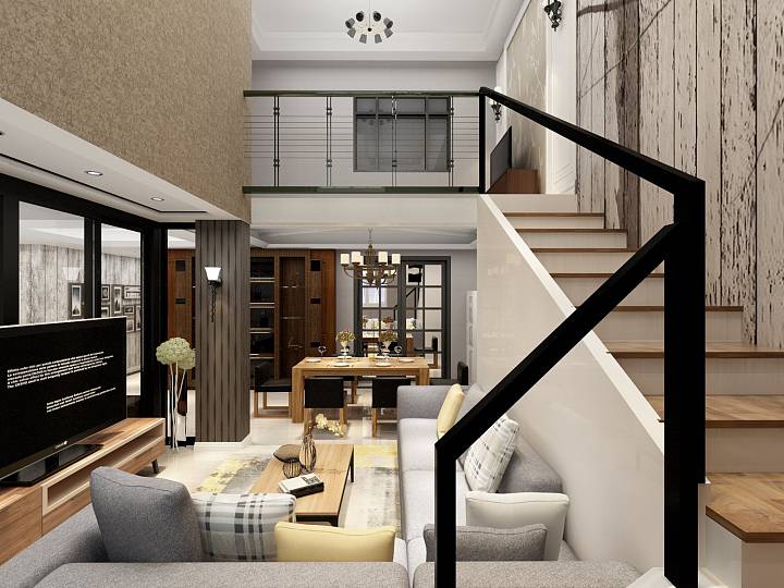 5. 跃层装修时也像普通房屋装修一样,要对每个空间布局进行功能的划分。不过其考虑的因素比较多,不仅要考虑到空间前后设计,还要考虑到上下层的空间设计。跃层阁楼设计装修时要依据主客之分、干湿之分、动静之分的原则进行装修,这样才能更好满足娱乐、休息、饮食的需求。
