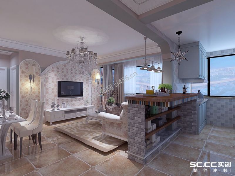 华润橡树湾两居82㎡乡村田园客厅装修效果图