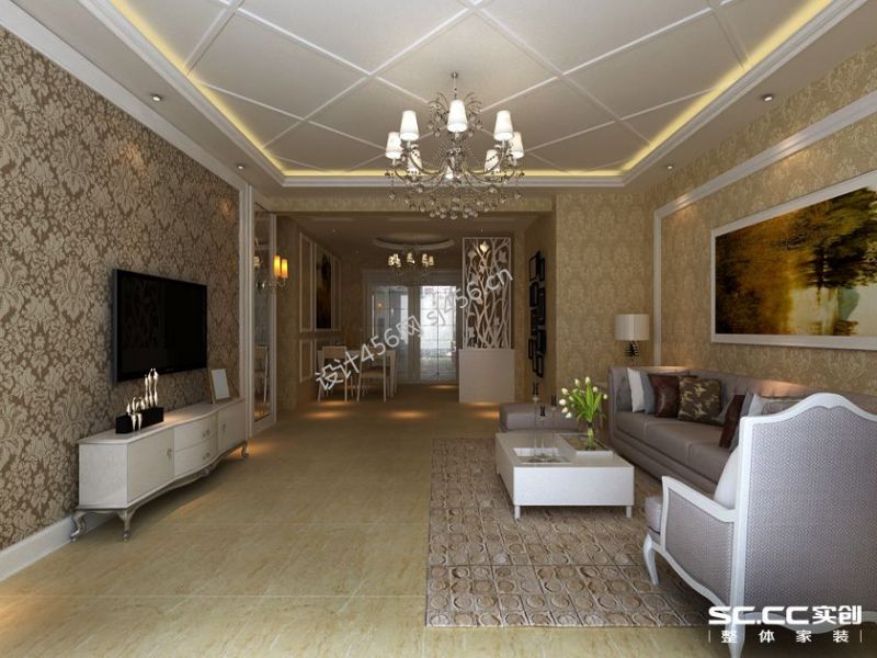 国瑞城四居150㎡简欧客厅过道装修效果图
