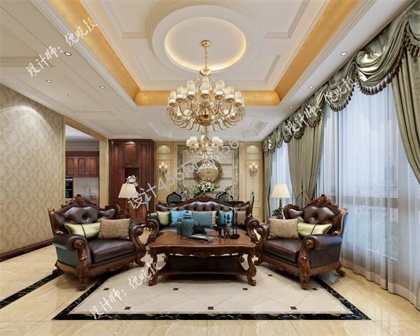 155平米美式风格四居室客厅吊顶装修效果图