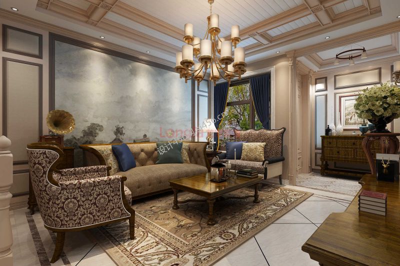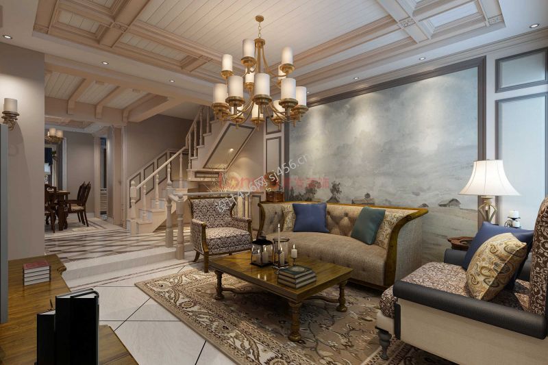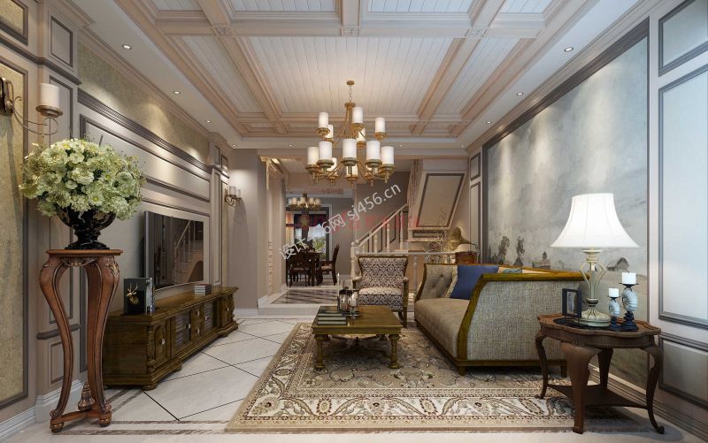 洋房客厅装修效果图 美式风格客厅灯 美式风格客厅电视墙
