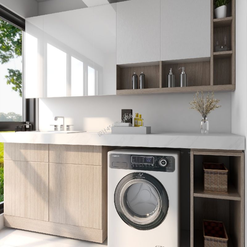 111㎡现代简约风三居室阳台洗衣机柜装修效果图