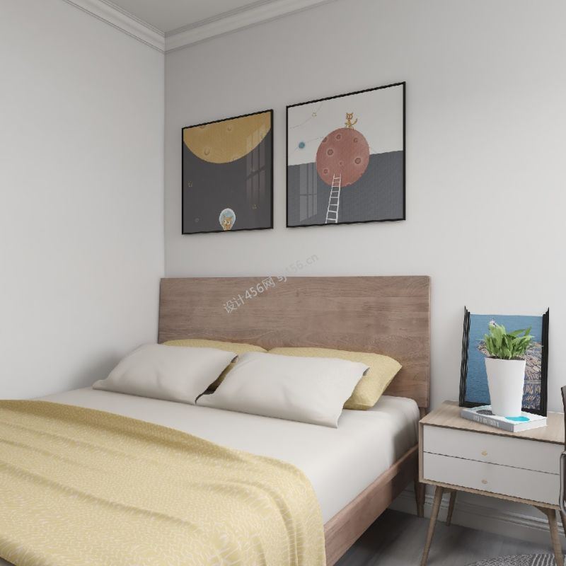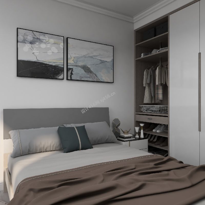 111㎡现代简约风三居室卧室背景墙装修效果图