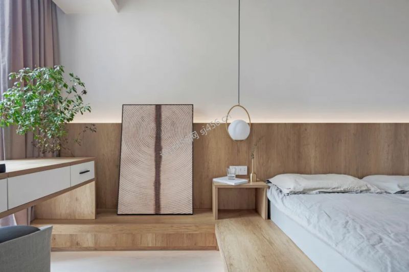 99平米现代原木三居室卧室背景墙装修效果图
