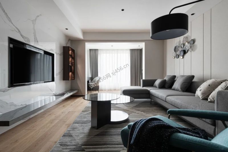 113平米现代简约三居室客厅沙发墙装修效果图