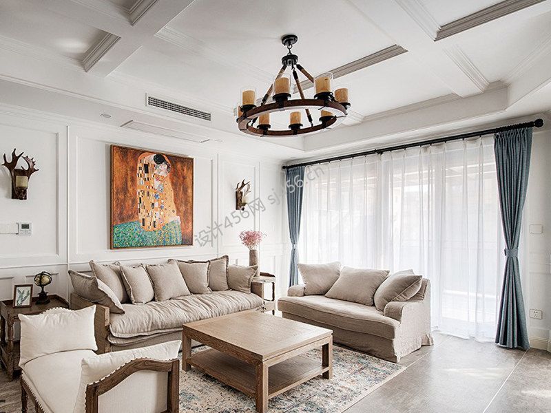 126平米美式三居室客厅窗帘装修效果图