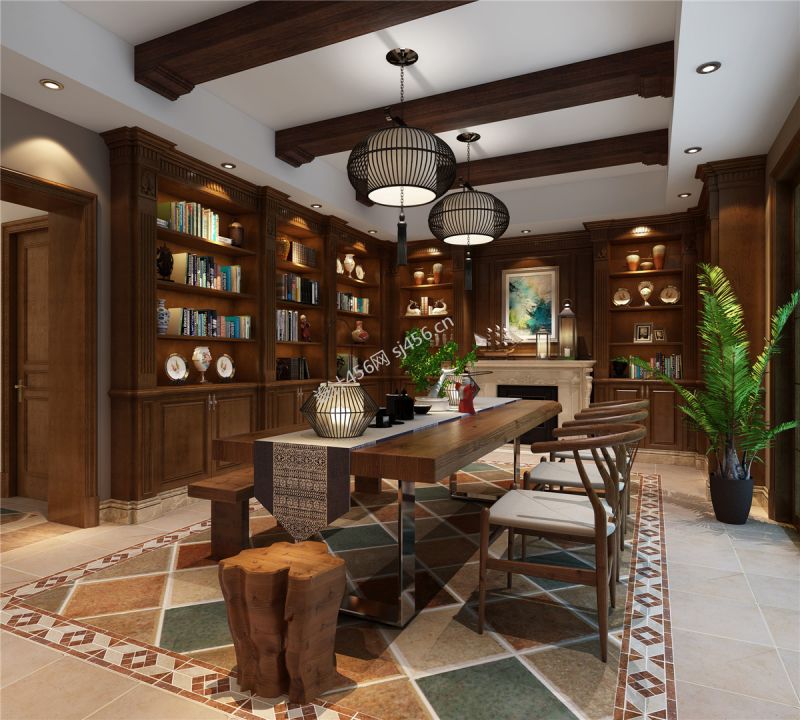 欧式风221.8平米别墅书房装修效果图