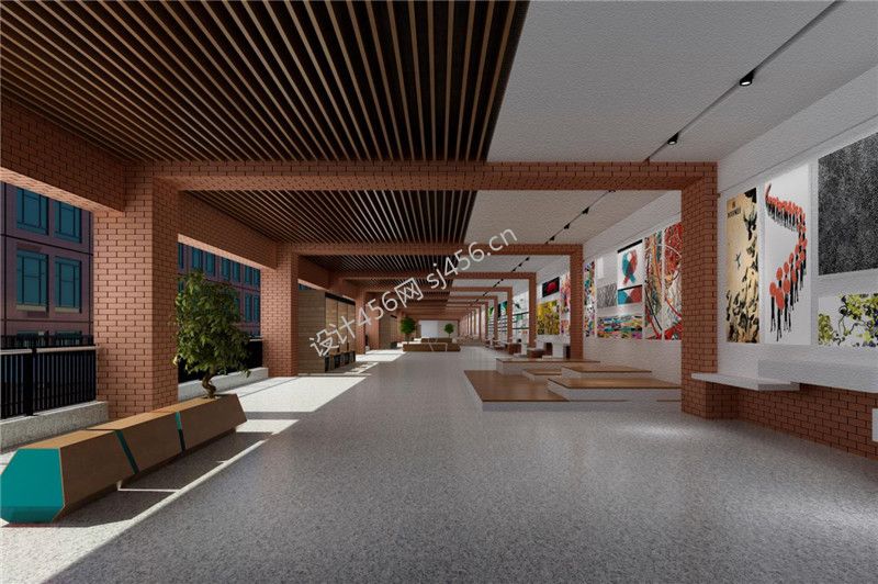 极简风600平米培训学校走廊装修效果图