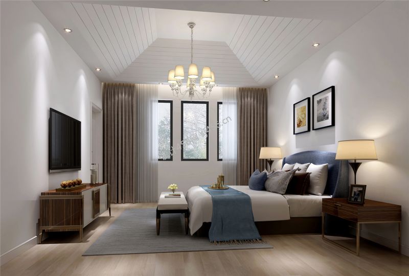 现代简约风224.6平米别墅卧室背景墙装修效果图