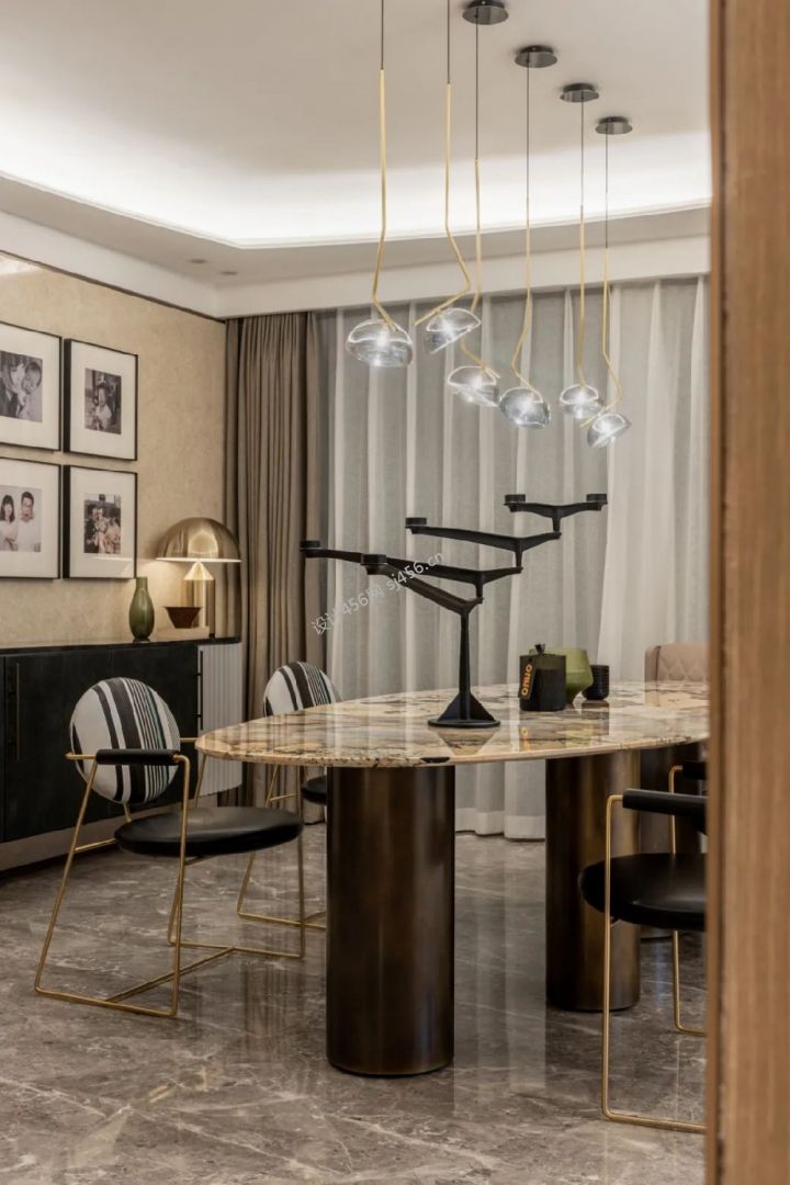 轻奢风格108平米餐厅背景墙挂画装修设计图