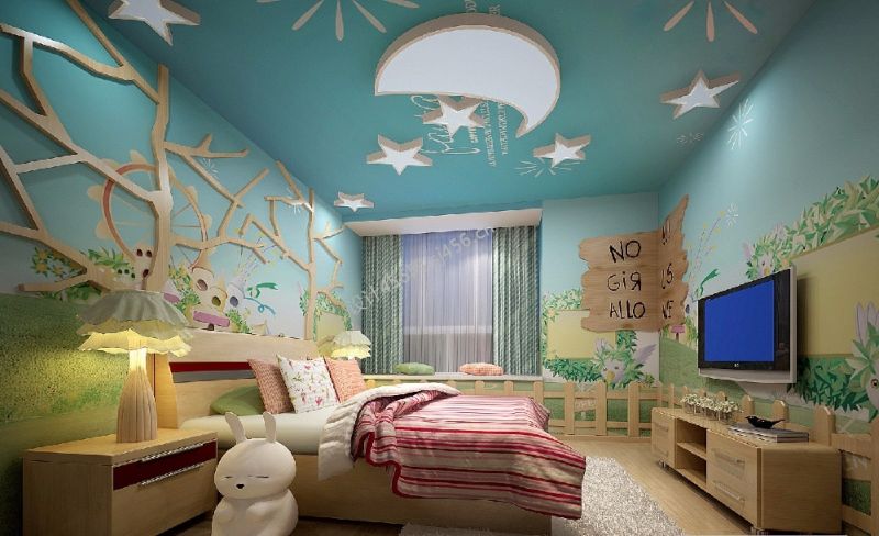 华源上海城现代风格儿童房彩绘背景墙效果图