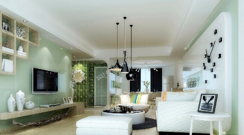华源上海城简约风格客厅电视墙收纳柜设计图