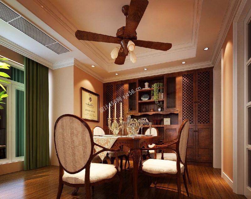 万达广场95平美式风格餐厅风扇灯效果图赏析