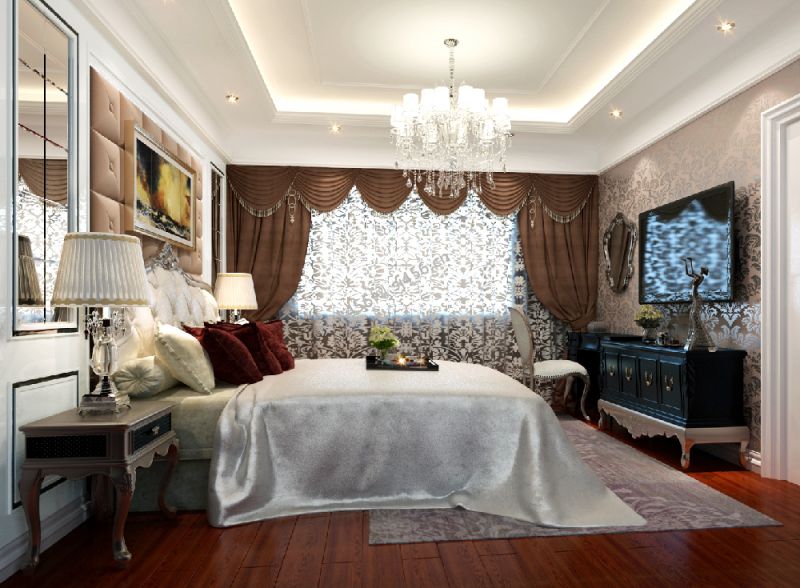 新古典风格300平别墅卧室电视柜设计效果图