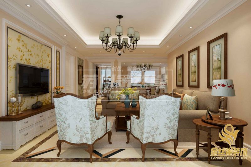 盛世壹品128平米美式三居背景墙装修设计效果图
