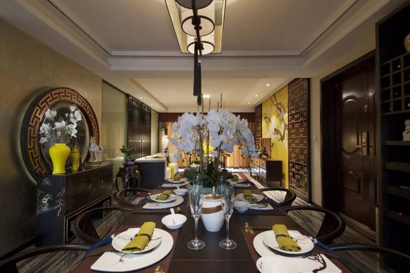 新中式餐厅装修效果图 实木餐桌装修效果图片