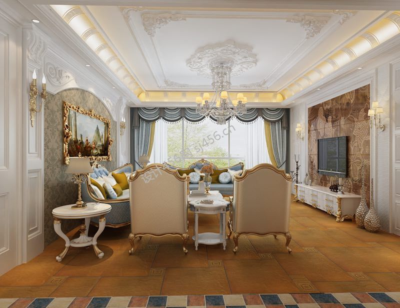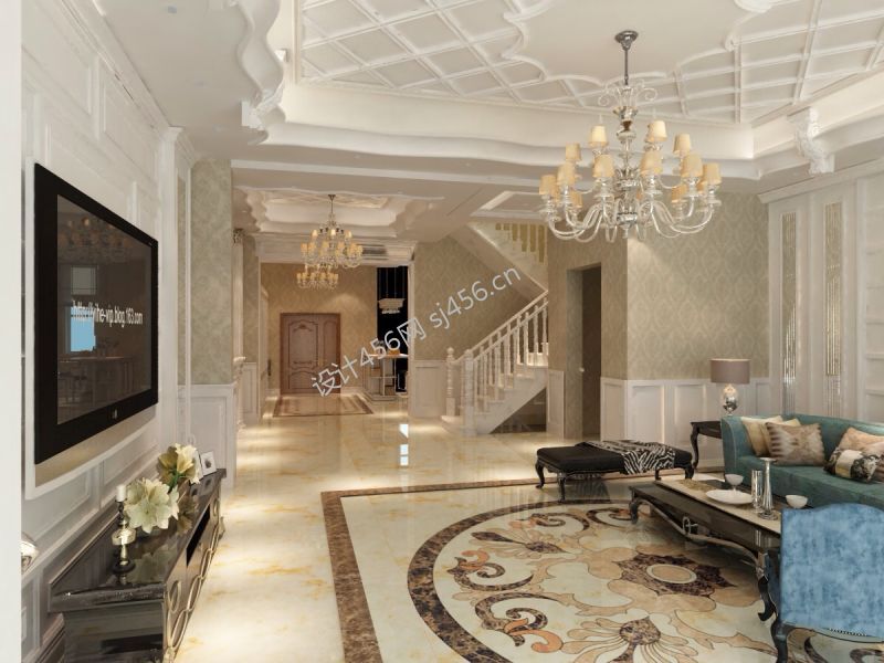 欧式别墅客厅装修效果图片大全 2020客厅拼花地砖效果图