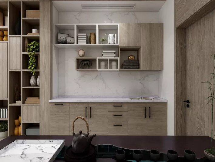 设计思想:提到“中式风格装修”,很多人都会想到古风沉着的红木、厚重的木器、庄重的色彩搭配,其实清新淡雅的新中式也可以结合时代的特征,散发出当代中式装修的魅力。