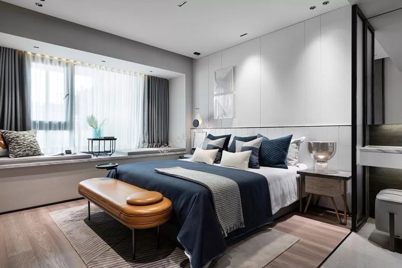 现代风格155平米卧室床头家装效果图