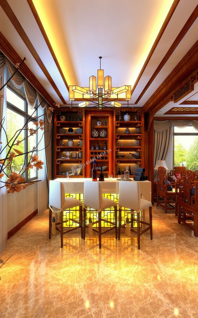 2020古典中式别墅效果图 酒柜吧台装修效果图