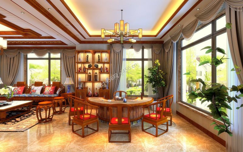 2020中式别墅客厅效果图 客厅窗帘装修图片