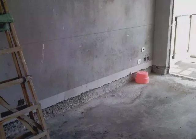 在地面施工前先在墙面的最 底部开一圈槽,槽的大小和深度刚好比踢脚线稍大(需要我们先选好踢脚线的尺寸再开槽)。