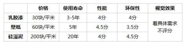 乳胶漆>硅藻泥≈壁纸壁布