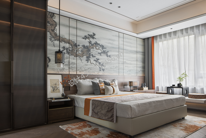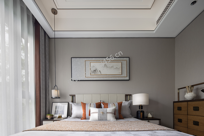 115㎡三居室新中式风格床头装修效果图