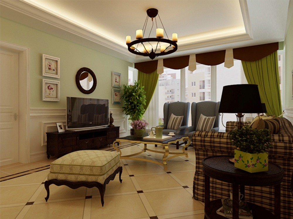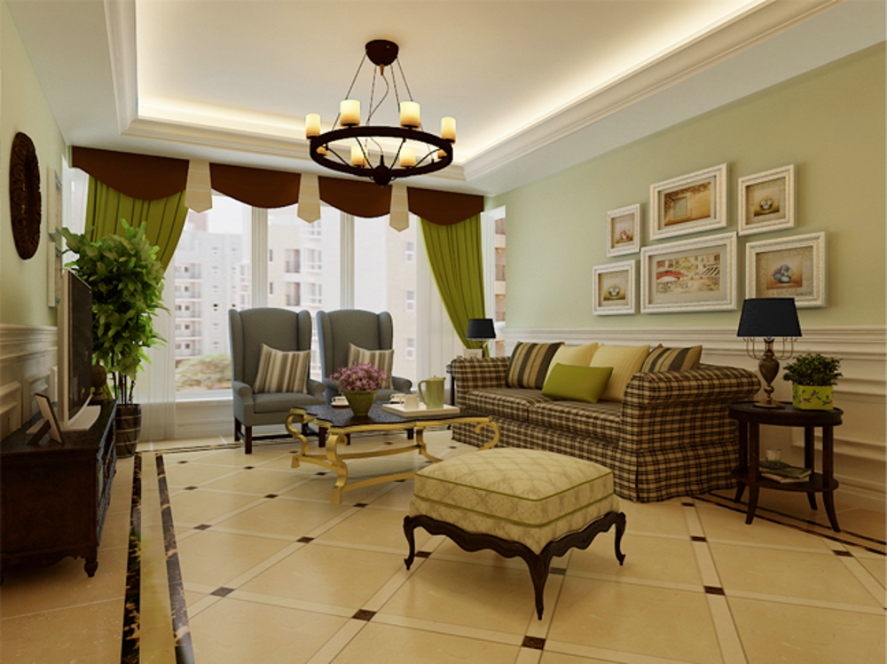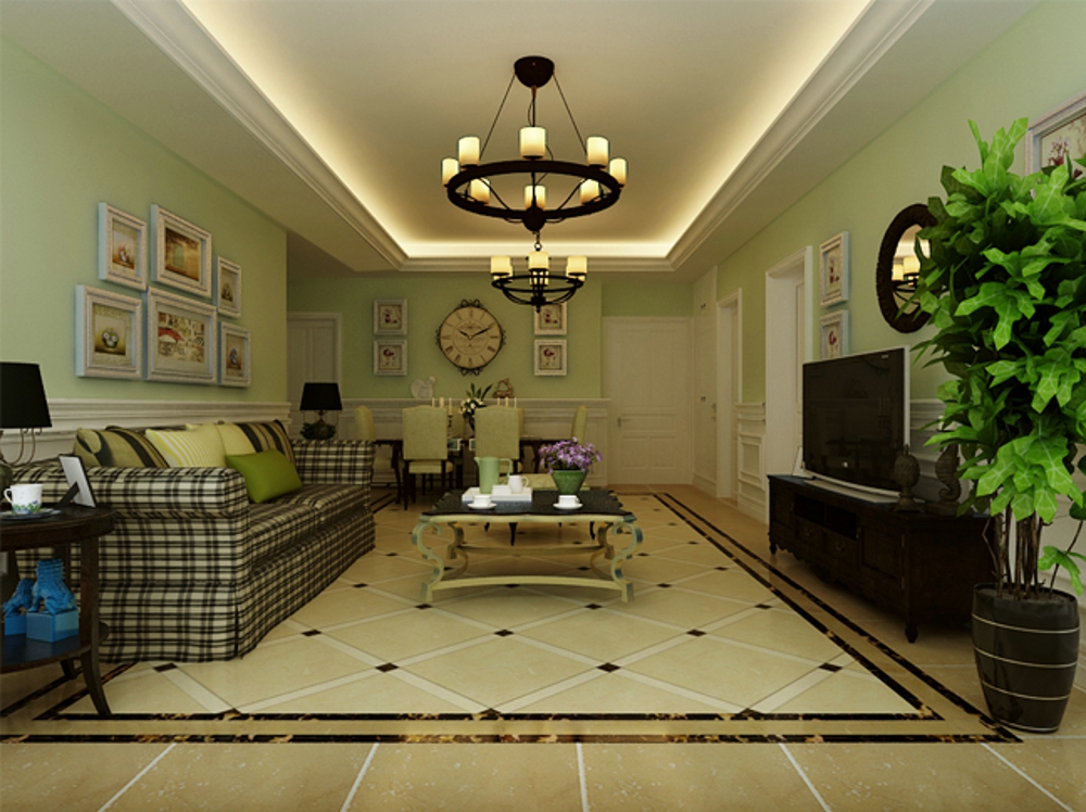 美式风格装修给人的第1印象就是自然、惬意,所以美式风格装修的特点就是室内有大量的绿色植物,一般都是终年常绿不开花的植物。比如:房间的地面、柜子上、桌上等都可以见到绿植的身影。所以在进行美式风格的软装搭配上,我们可以多选用绿色植物,形成错落有致的格局与层次感。