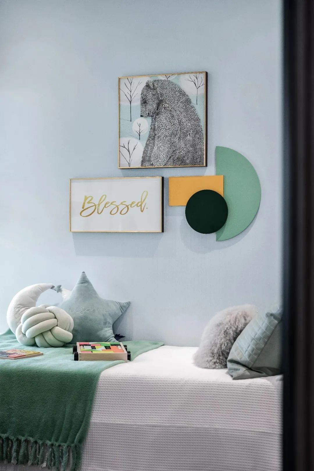 ▲儿童房的配色比较活力清新,结合卡通可爱的装饰布置,也让空间显得更加自然舒适,为孩子营造出一个轻盈梦幻的空间。