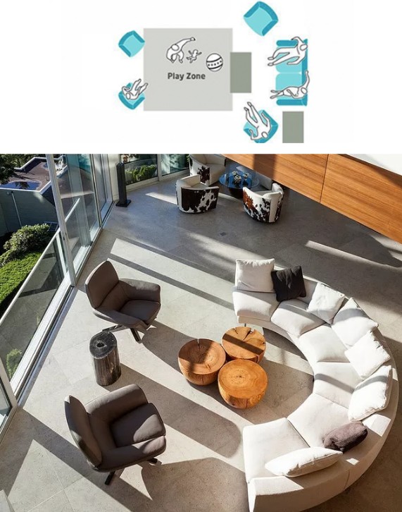 1、是有活动空间的布局方式,这样的客厅对于家里有孩子的来说,是最 合适的。可以在中间用地毯打在活动区,用沙发围绕,这样就可以让孩子在其中玩耍,聚会的时候也不耽误爸爸妈妈们带娃。