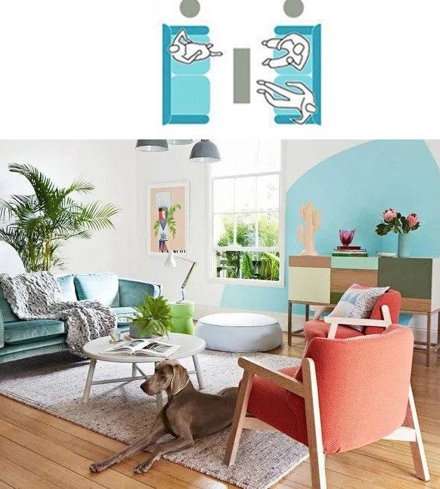 2、对称性的客厅布局,有点像是公司办公室的那种布局。这种布局主要是交谈的功能,在客厅也不需要电视。这种布局的方式给人的感觉是更加正式更加严肃,在家里搞成这样,就感觉是面试一样,好"压抑"啊!