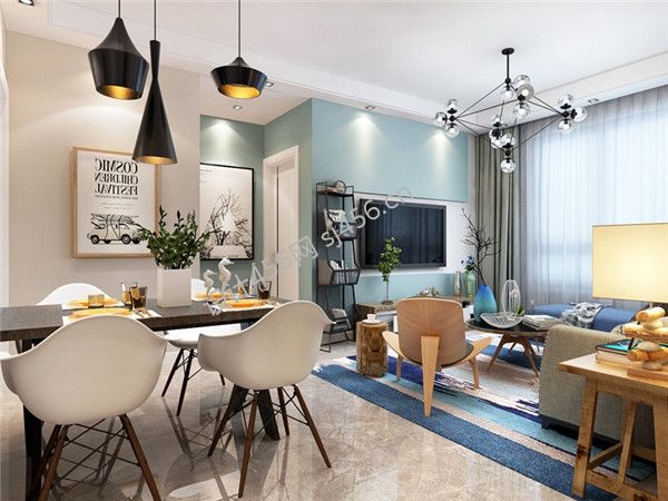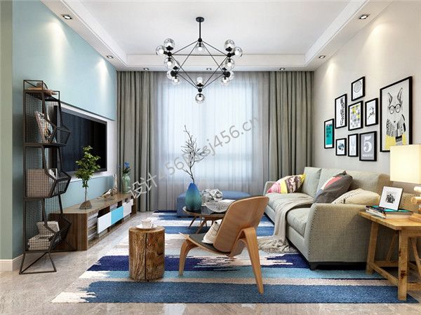 106平米三居室现代简约客厅吊灯装修效果图