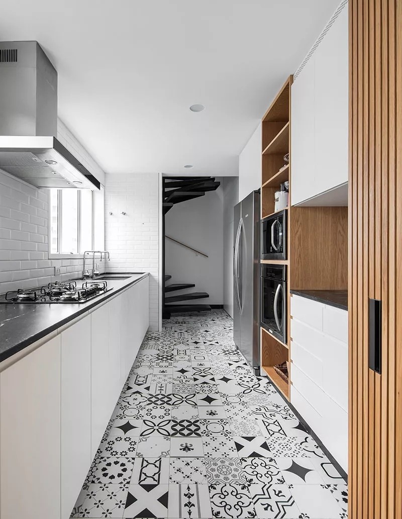 年轻人喜欢把厨房布置得更加精致文艺的,就可以考虑选择一些比较文艺的花砖来装修了,这样空间感更加文艺精致。
