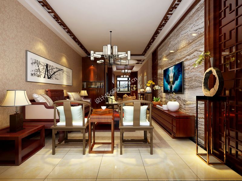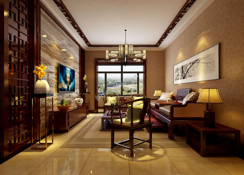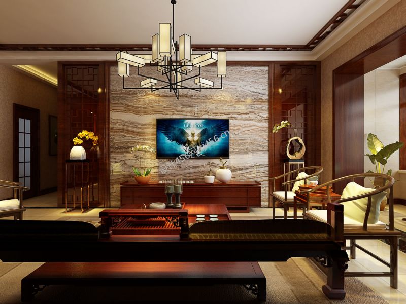 详情新中式风格客厅图片 2020微晶石电视墙效果图