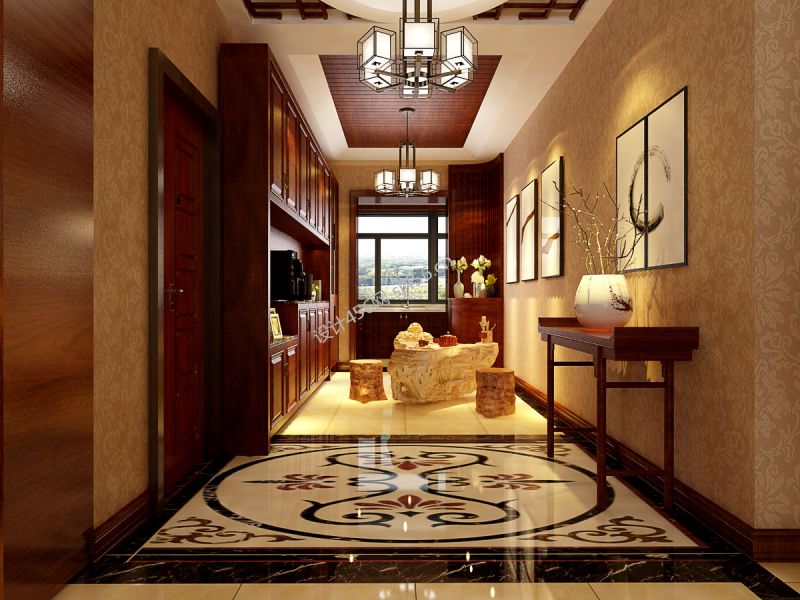 2020新中式家装效果图赏析 2020玄关拼花地砖效果图
