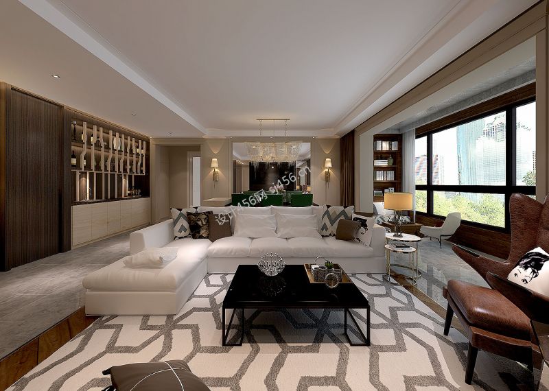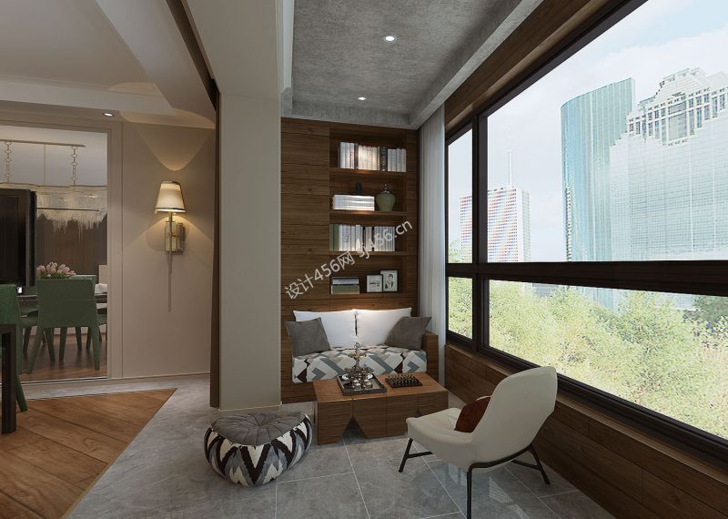 2020现代客厅效果图 2020客厅阳台书柜效果图