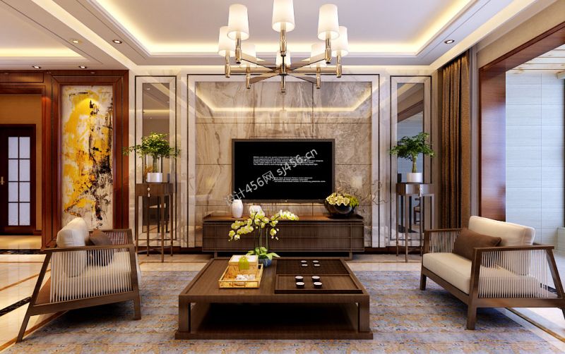 2020新中式客厅设计效果图 2020电视背景墙设计效果