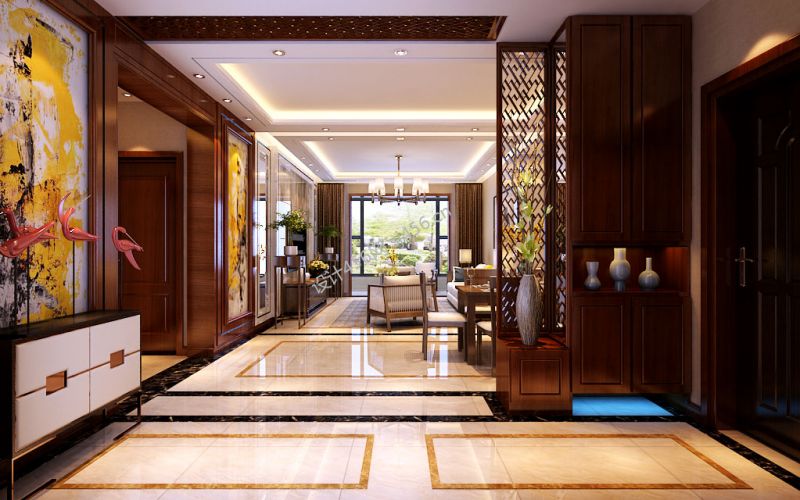 详情2020玄关新中式别墅效果图 2020入门玄关鞋柜装修效果图