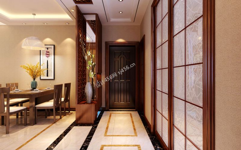 2020雅致新中式别墅效果图 玄关鞋柜设计图