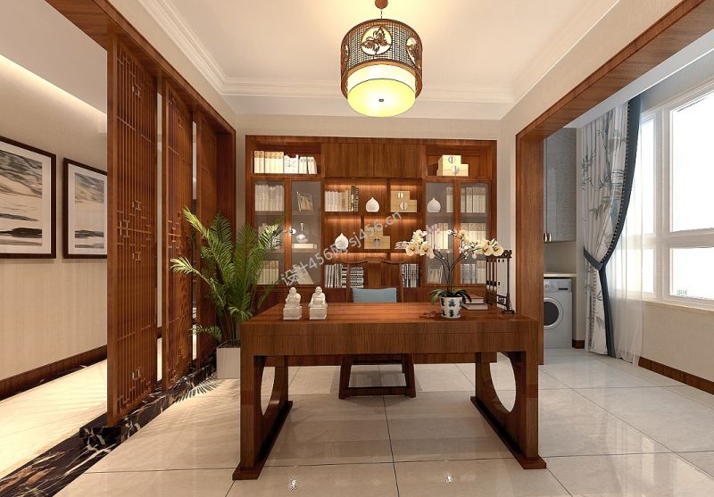 详情简约中式书房效果图 2020书房实木家具装修效果图