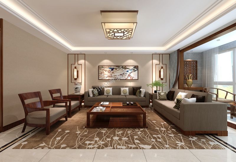 大气新中式客厅装修 2020客厅地毯搭配效果图片